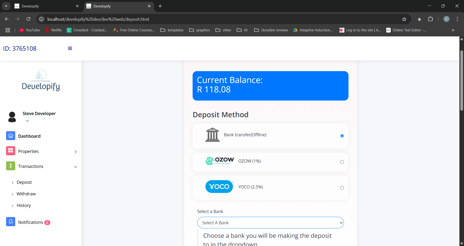 If you choose Ozow or Yoco, you will be able to enter the amount you want to deposit the then process the deposits